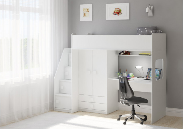 Учебная зона со столом под спальным местом открывает возможности для письменных работ,а также здесь удобно расположить ноутбук.