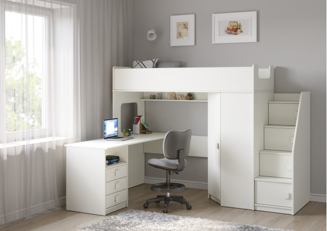 Учебная зона со столом под спальным местом открывает возможности для письменных работ, а также здесь удобно расположить ноутбук.