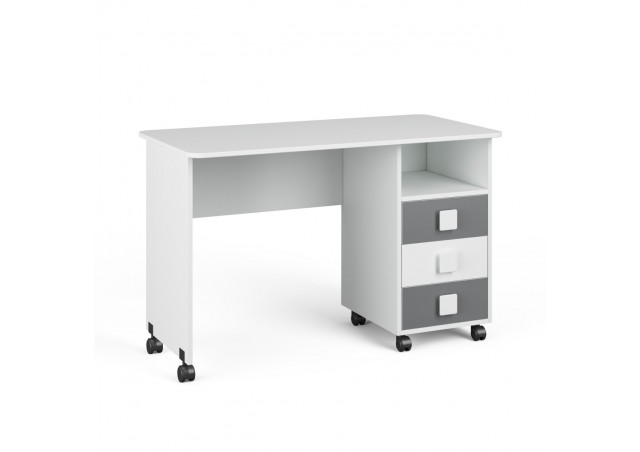 Три выкатных ящика стола обеспечат удобное хранение канцелярии,письменных,учебных и прочих принадлежностей.Над ящиками открытая полка для мелочей,которые будут всегда под рукой.